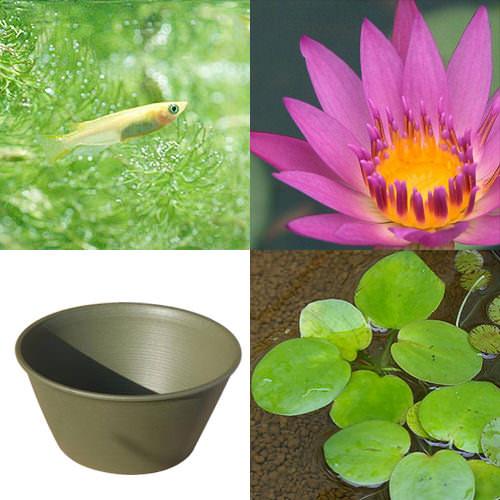 【まとめ割】 メダカ・金魚と相性抜群!◆はじめてのハス栽培セット(メダカ付) 桃一重ハス+ウォームベージュ450+ヒメダカ+浮き草 他 価格: 3,940円 レビュー評価:0.0 レビュー数:0 ハスはビニールポットに植えつけた状態での発送となります。ポットの高さが高く、鉢からはみ出してしまいますので、要らない部分はカットしてポットごと鉢に入れてください。植え替えの際には節や芽の部分が折れ易くなっていますのでポットからそっと取り出して植え付けを行って下さい。【セット内容】・植物(1ポット分)・プラスチック製水鉢(直径約45×高さ約24.5cm)・ヒメダカ(6匹)・おまかせ浮き草3種セット・固形栄養素(適量)・カルキ抜き・餌サンプル※浮き草とメダカはサービス品につき品質保証及び、死着補償はございませんのでご了承下さい。浮き草の種類はおまかせにつき、ご指定いただけません。【ハスの植えつけ方 Supported by 楽天ウェブサービス |