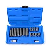 (STRAIGHT/ストレート) ヘクサロビュラビットセット 26ピース (いじり止め無) 10-5991 ![]() 価格: 1,692円 レビュー評価: レビュー数: 六角の星型をしているためネジとのかみ合いが強くより大きなトルクが得られる形状のヘクサロビュラビットセットです。 [ビットホルダー差込角] 3/8"(9.5mm)、1/2"(12.7mm) [セット内容] T10、T15、T20、T25、T27、T30、T40、T45、T50、T55、T60、T70 [ビット全長] 30mm、75mm ■各ビットを付属のビットホルダーに取り付けて使用します。 ■ビットは各サイズ共、ショートとロングがセットになっています。 [注意] ▲インパクトレンチでは使 |